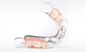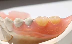 入れ歯の歯ぐきに接する部分を金属で作製した入れ歯です。一般的な入れ歯と違い、熱伝導性が高いため食事の温かさや冷たさを自然に感じられ、美味しく食事を楽しめます。また、金属製なので割れにくく、変形しにくい特徴があります。
