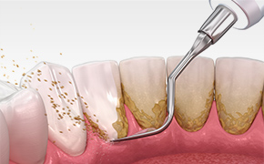 歯の表面の見える部分にある歯石、歯垢などを取り除き、歯の根の表面を滑らかに研磨する治療です。これを行うことで、歯周病の進行を抑えて歯ぐきの健康を回復することができます。